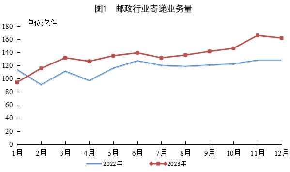 本站 1 月 22 日消息,国家邮政局公布 2023 年邮政行业运行情况,寄递业务量累计完成 1624.8 亿件,同比增长 16.8%。其中,快递业务量(不包含邮政集团包裹业务)累计完成 1320.7 亿件,同比增长 19.4%。