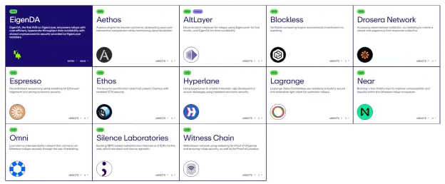 四、EigenLayer生态现状及项目盘点