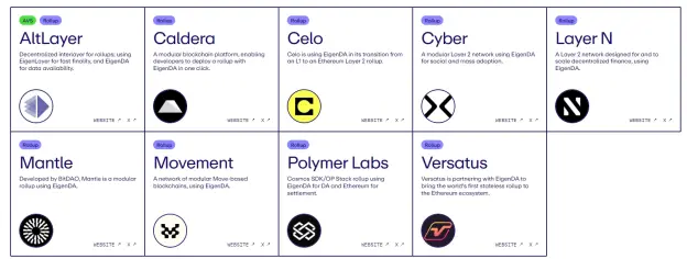 6. Movement:Movement网络由一系列基于Move语言的模块化区块链组成,同样采用EigenDA技术。这种设计使Movement能够在提供灵活性的同时,保证数据的高效处理和安全性。