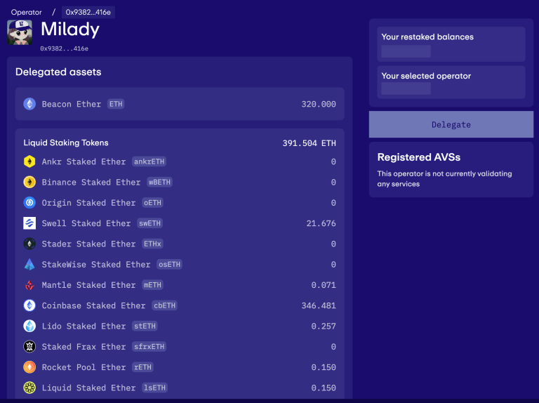 EigenLayer代币委托界面