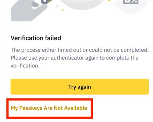7.如果您无法使用通行密钥进行身份验证,但已经启用了双重身份验证(2FA)设备,可以点击【我的通行密钥无法使用】,然后使用该设备进行验证。如果无法使用双重身份验证设备,您可能需要联系BI安交易所的客服寻求帮助。