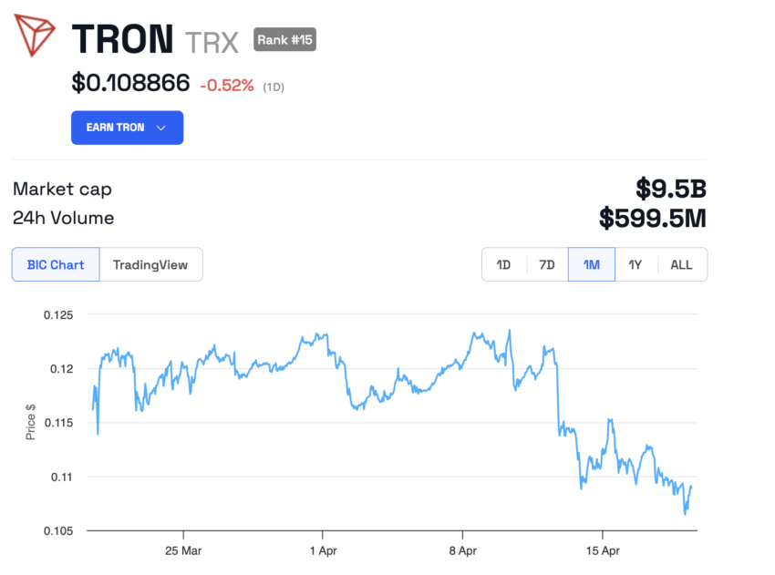 尽管如此,这一进展对TRX和BTT代币价格的影响仍然很小。在过去的24小时内,TRX代币略有下跌,跌幅为0.52%,目前交易价格为0.10美元,而BTT则小幅上涨了2.5%。