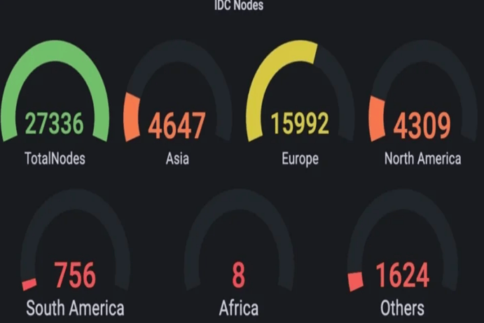 Meson官网显示,其总结节点数已经超过十万,目前为115194节点,其IDC广泛分布于世界各地。其带宽容量约20 Tb/s,平均延迟为90ms。