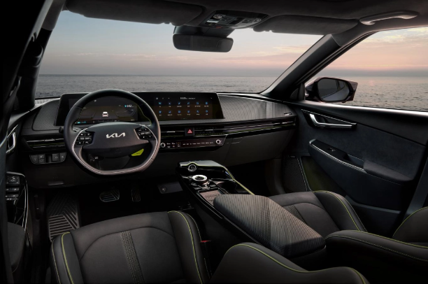 为了提供用户更加环保和健康的乘坐环境,EV6 GT的内饰采用了大量环保材质,如可回收材料和亚麻籽提取物,特别应用在座椅和地垫等部分。