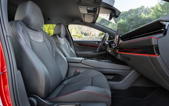内饰方面,ID.7 GTX Tourer同样以黑色为主色调,并辅以红色缝线和氛围灯进行点缀,营造出浓郁的运动氛围。与普通版本一样,新车也配备了全液晶仪表和悬浮式中控屏,科技感十足。此外,全新的运动座椅不仅提供了出色的支撑性,还配备了12向电动调节、座椅记忆、座椅通风/加热等实用功能。GTX车型还提供了自动泊车、ACC自适应巡航等智能辅助驾驶系统,为驾驶者带来更加便捷、安全的驾驶体验。