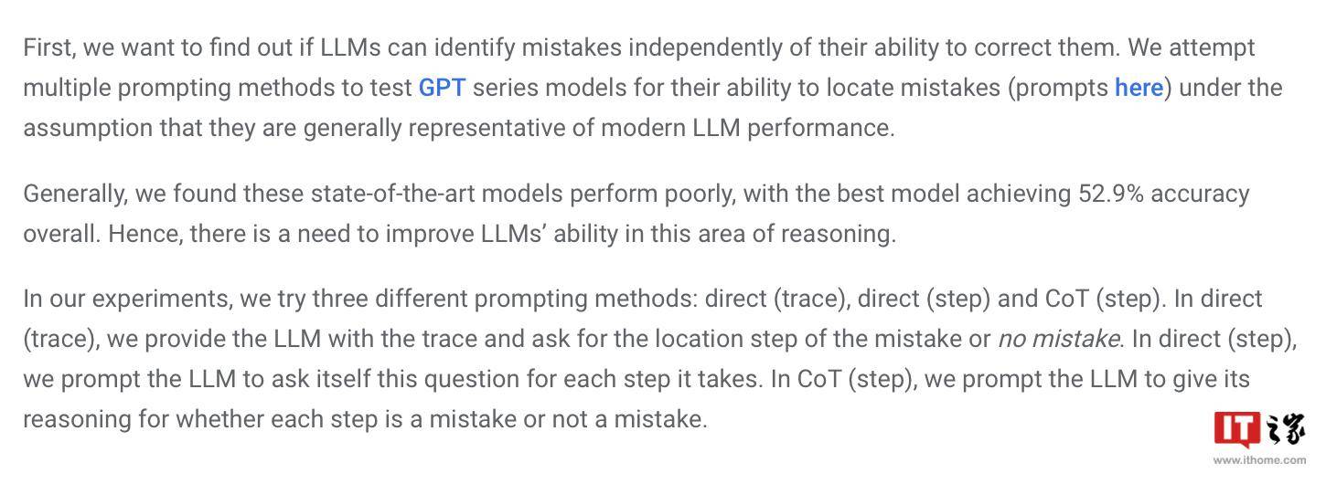 根据报告,谷歌声称其被认为是目前最先进的大语言模型,但其自我纠错能力相对有限。在测试中,成绩最好的模型只能找出52.9%的逻辑错误。