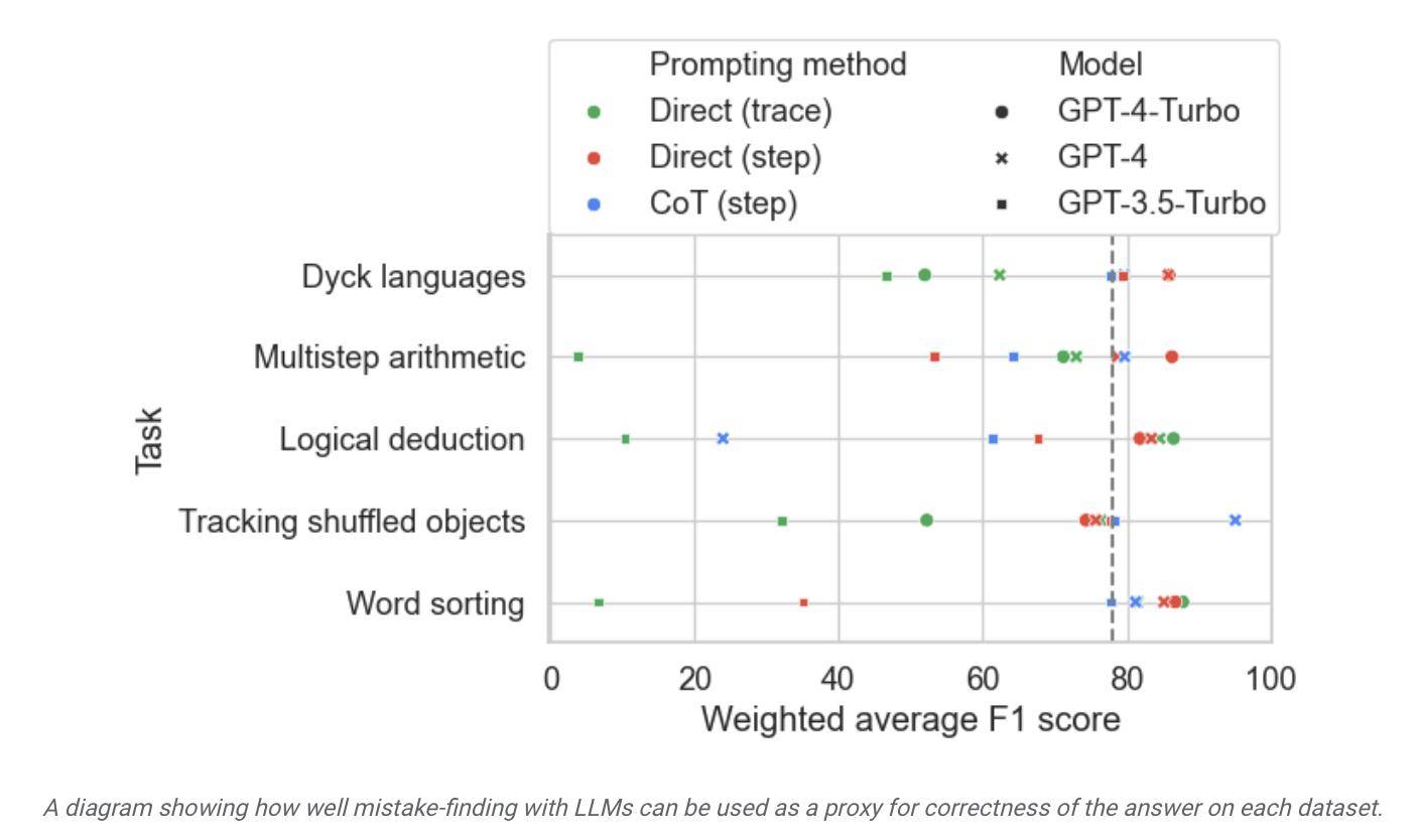 研究人员指出,“BIG-Bench Mistake”数据集中的逻辑错误十分明显,因此可以作为语言模型测试的良好标准。该数据集可帮助模型从简单错误开始学习,逐步提高错误识别的能力。