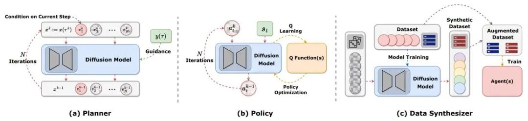 图 2:扩散模型在强化学习中扮演的不同角色。