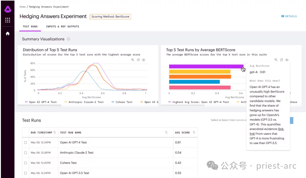 - 测试超参数:Arthur Bench 可以用于测试不同超参数对 LLM 性能的影响。超参数是控制 LLM 行为的设置。
