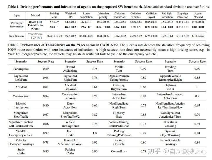 结果,Think2Drive能够在单个A6000 GPU上进行3天的训练后,在CARLA v2中以专家级的熟练程度运行,据我们所知,迄今为止尚未报告有关CARLA v2的成功(100%的路线完成)。还提出了CornerCase-Repository,这是一个支持通过场景评估驾驶模型的基准。此外,提出了一个新的平衡指标来评估性能,包括路线完成、违规次数和场景密度,以便驾驶分数可以提供更多关于实际驾驶表现的信息。
