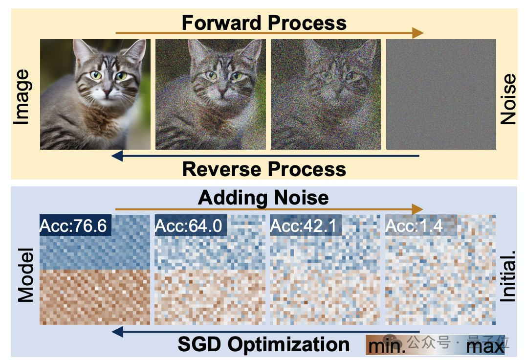 而神经网络训练,同样遵循这样的转变过程,也同样可以通过添加噪声的方式来降级,研究人员正是在这一特点的启发之下提出p-diff方法的。