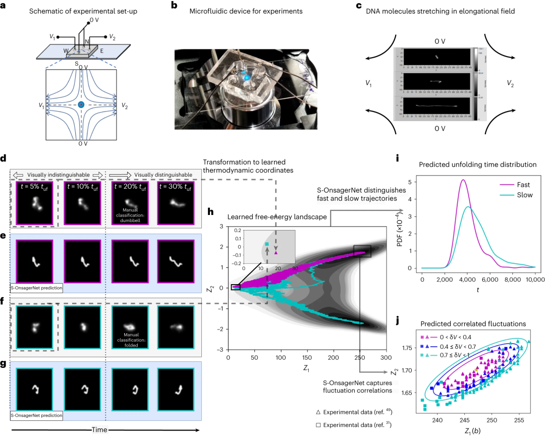 现代科学方法采用通用方法,确保我们对自然的理解稳定而不冲突地进展:新理论需要根据先前积累的数据进行假设和检验,与基本科学原理兼容并可以通过实验验证。 不幸的是,没有通用的算法 recipe 可以在复杂的系统中这样做以促进发现。 因此,到目前为止,只有最基本的物理现象(通常是静态的、处于平衡状态)可以通过一组直观的方程来描述。许多动态的、非平衡的现象决定了生物学、软凝聚态物质和化学的功能,都是通过非常近似的经验定律来描述。 人工智能和机器学习的进步为应对这一挑战提供了数据驱动解决方案的可能性。 昂萨格倒易关系,是描述不可逆热力学过程的线性唯象定律中各系数间的倒易关系。它是粒子微观运动方程的时间反演不变性在宏观尺度上的反映。这个关系是 1931 年由拉斯·昂萨格(Lars Onsager)建立。拉斯·昂萨格因为发现了这些倒易关系而获颁授 1968 年的诺贝尔化学奖。 在此,研究人员开发了人工智能平台——随机 OnsagerNet(S-OnsagerNet),可以直接从微观轨迹的观察中发现任意随机耗散动力系统的可解释和封闭的热力学描述。 从数据中理解和预测动态过程的行为主要有两种方法:非结构化和结构化。S-OnsagerNet 方法属于后一类。到目前为止,还缺乏一种通用的结构化方法来模拟软物质、生物物理学和其他应用中经常出现的耗散、非平衡和噪声动力学。研究人员基于经典的 Onsager 原理,专门针对这类问题。 物理系统的宏观热力学描述因其提供的见解而受到高度追捧。然而,对于一般的复杂动力系统来说,构建直观的热力学描述以进行后续的分析和控制是一项艰巨的任务。S-OnsagerNet 方法解决了这一挑战。