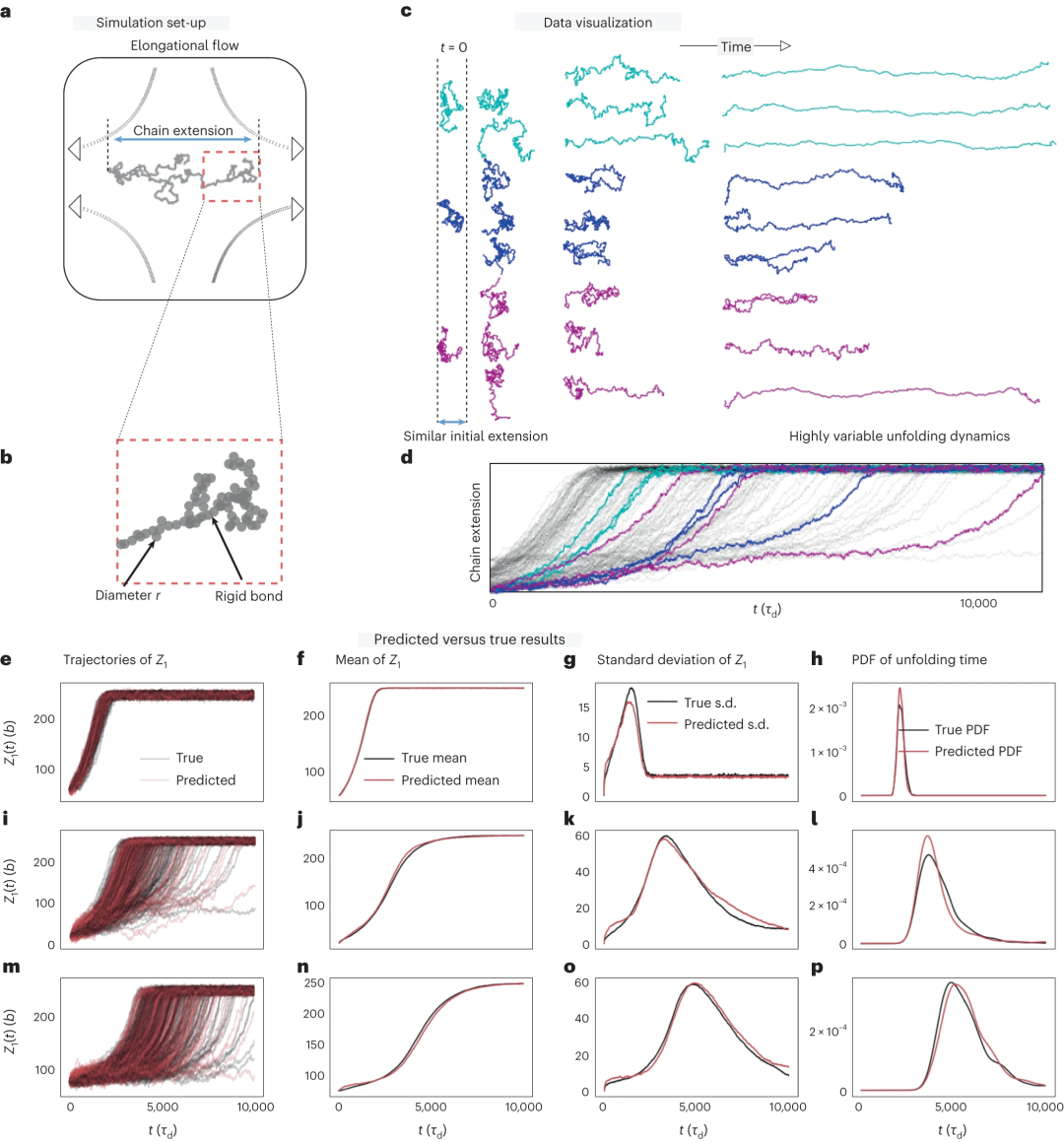 图示:模拟设置、数据可视化、预测与真实拉伸轨迹及其统计数据。(来源:论文)