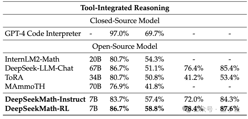 但要注意的是,GPT-4按泄露规格是一个千亿参数的庞然大物,而DeepSeekMath参数量只有7B。