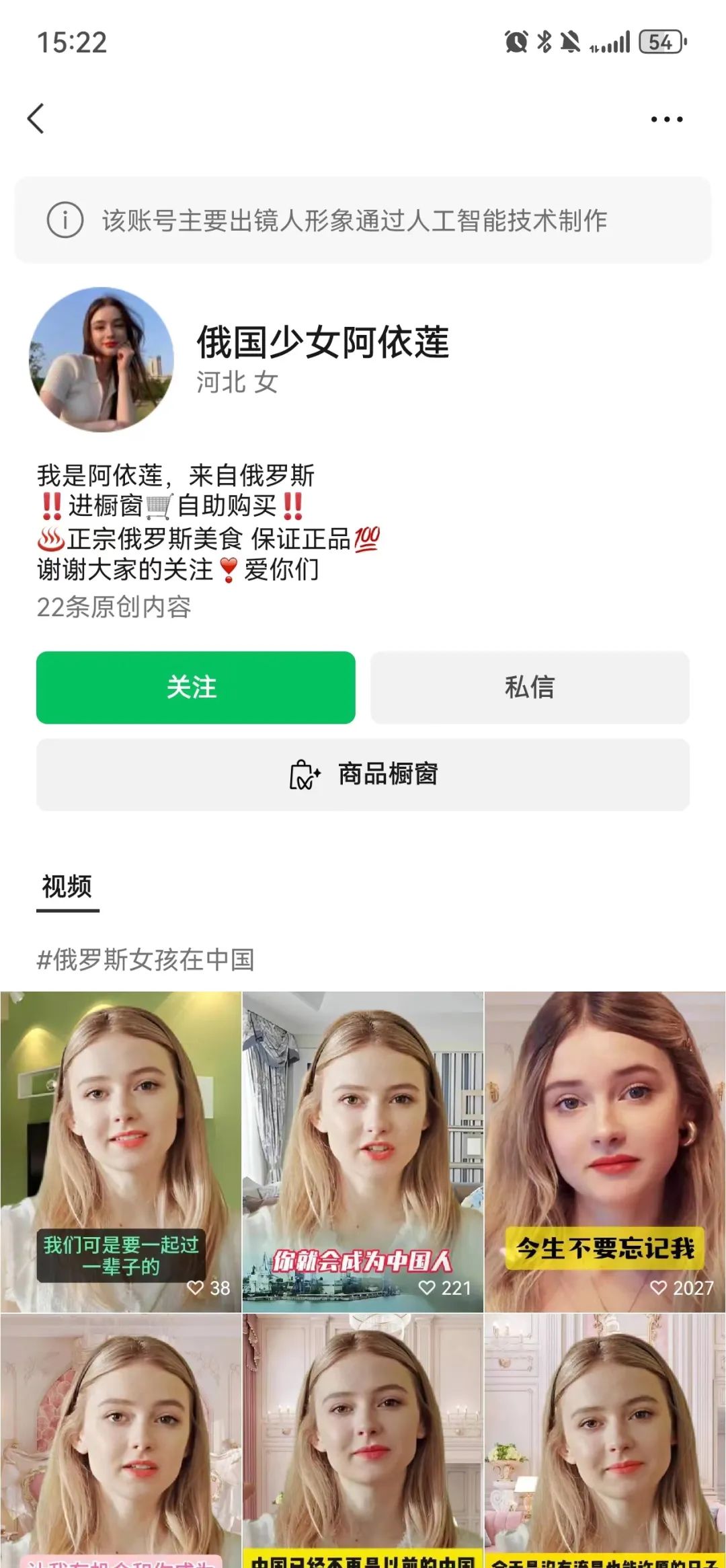 这些数字人背后的团队,通过技术的力量,可以快速制作大量的视频,构建自媒体矩阵,然后用一些中国人爱听的文案,什么夸中国好,夸中国男人好,总之你爱听什么她就讲什么。通过这种方式快速积累流量,有了流量,下一步就是带货。