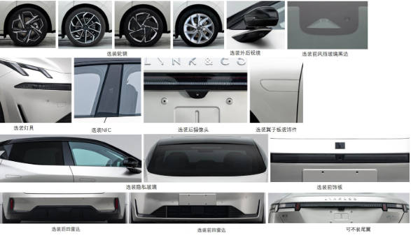 根据小编了解,领克07 EM-P提供了丰富的配置选择,如多款轮圈、NFC钥匙、前后雷达等可选配件。此外,消费者还可以根据个人喜好选择是否安装尾翼。