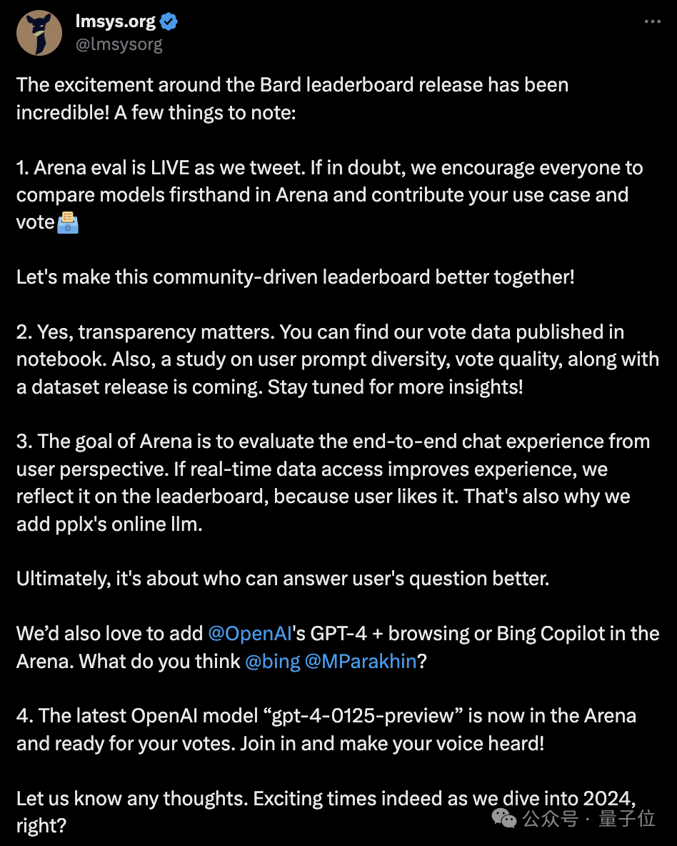 参考链接:https://twitter.com/lmsysorg/status/1752035632489300239。