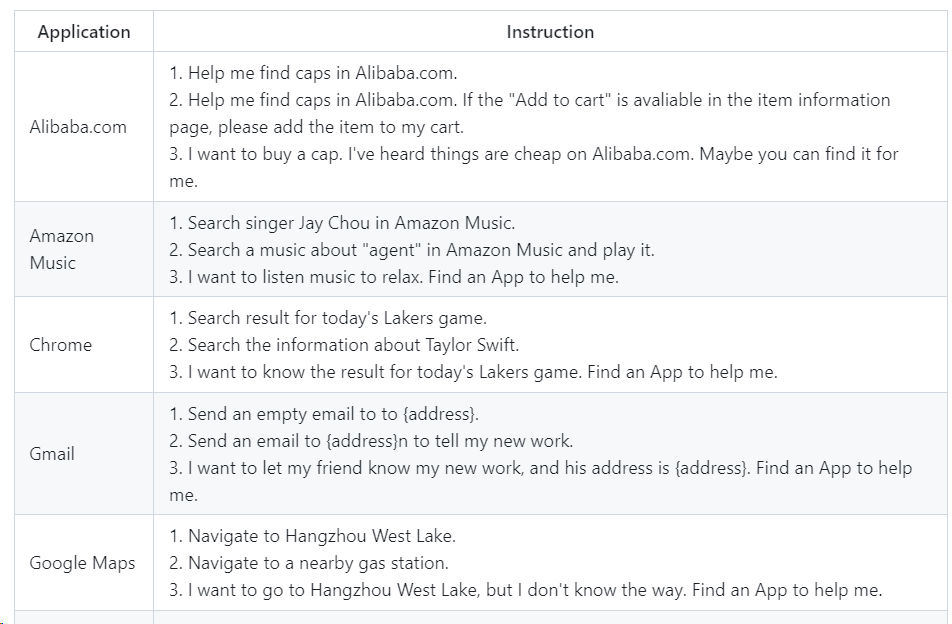 阿里团队为了评估该代理的准确率和性能,还搭建了一套适配不同场景的基准测试集,包括电商购物、音乐、浏览器、地图、应用商店、记事本、系统设置、视频、短视频、跨App等。每个场景设计了三个不同难度的指令,以评估 Mobile-Agent 在各种任务下的表现,
