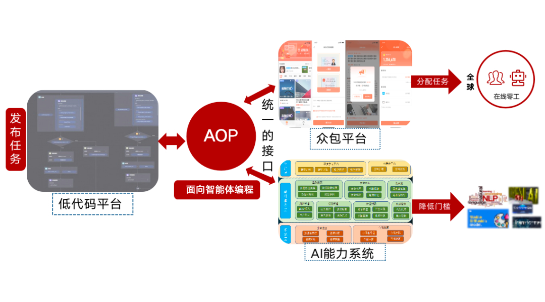 区别于传统PaaS平台,有灵机器人中“人”的决策至关重要。平台通过众包模式下发任务,快速调用“人的能力”,众包用户通过平台在线完成任务,解决采集数据、标注数据成本过高的问题。平台还会主动学习、实现数据闭环,将真实任务人工操作数据反哺AI算法,实现任务预处理,极大提升了任务完成的效率;众包用户也能通过「线上接单,远程作业」的模式,解决高危、环境恶劣场景下施工问题,实现足不出户即可完成交付。