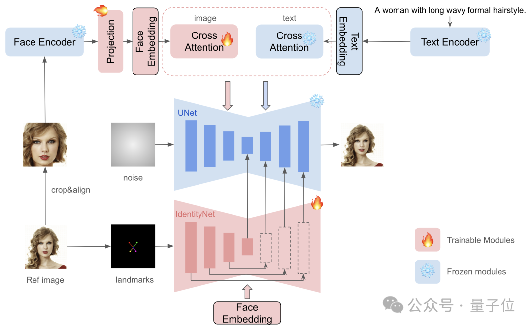 (3)IdentityNet网络,它通过额外的空间控制对参考图像的详细特征进行编码,最终完成图像生成。