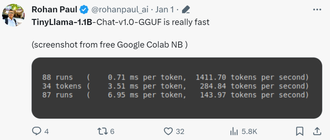 手快的网友已经开始整活了:运行效果出奇得好,在 GTX3060 上运行,能以 136 tok / 秒的速度运行。