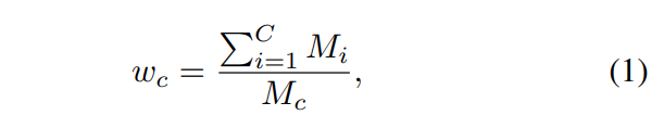 此外,由于严重的类别不平衡,模型很容易被比例较大的类别所支配,如地面,从而忽略场景中的其他重要元素,如汽车、人等。因此,属于不同类别的体素被分配不同的损失权重。例如,属于类c的体素分配有的损失权重为: