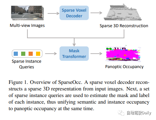 占用预测在自动驾驶领域扮演着重要的角色。然而,传统的方法常常构建密集的3D体积,忽略了场景的稀疏性,从而导致高计算成本。此外,这些方法只能进行语义占用的预测,无法区分不同的实例。为了利用稀疏性并实现实例感知,研究人员引入了一种全新的完全稀疏全景占用网络,即SparseOcc。SparseOcc首先通过视觉输入重建稀疏的3D表示。随后,它利用稀疏实例查询来预测每个目标实例。通过这种方法,SparseOcc能够更高效地进行占用预测,并且能够区分不同的实例。这对于自动驾驶系统的性能提升至关重要。
