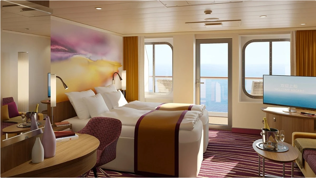 这艘邮轮是由中国船舶外高桥造船有限公司建造的,它拥有高达16层的上层建筑生活区,内设有剧院、特色餐馆、购物广场、艺术走廊和水上乐园等多种丰富的休闲设施。