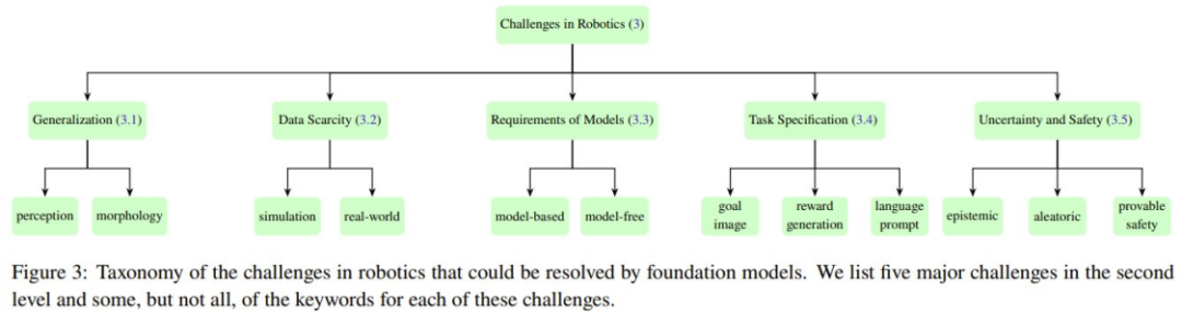 典型机器人系统的不同模块所面临的五大核心挑战。图 3 展示了这五大挑战的分类情况。