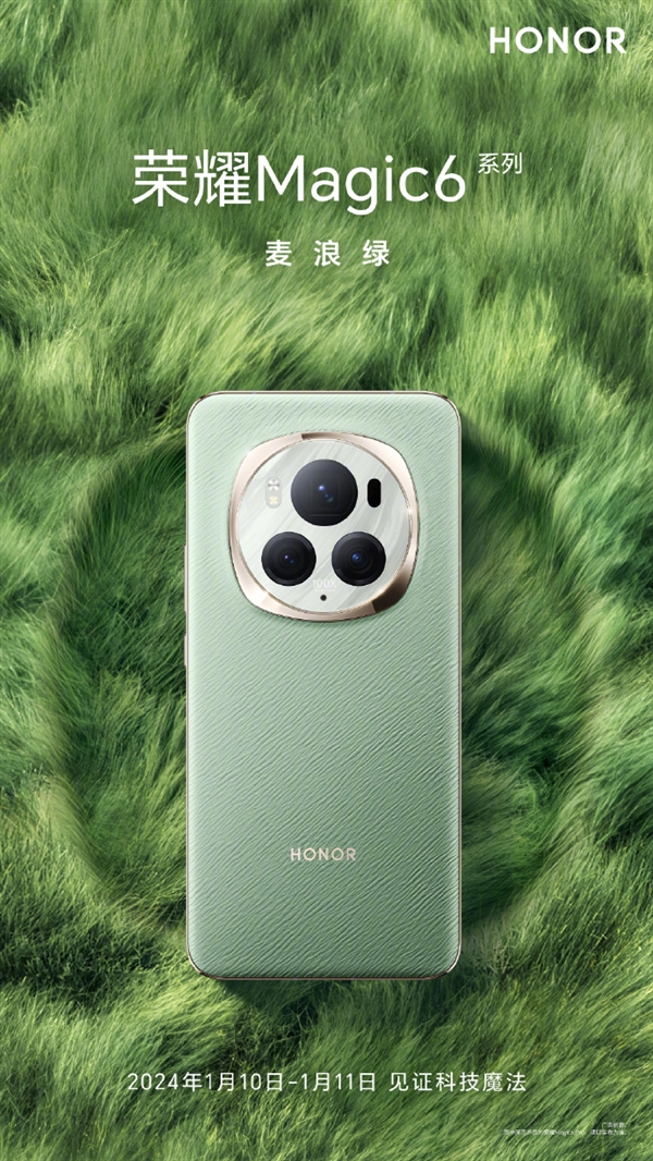 荣耀品牌的首席执行官赵明在1月5日公开了荣耀Magic6系列的最新配色方案——麦浪绿。这款配色的灵感源于夏日卓尔山脚下的青稞麦浪,象征着科技产品中自然的生机与人文的情感完美融合。这一配色方案展现了荣耀品牌对于创新与美学的追求。