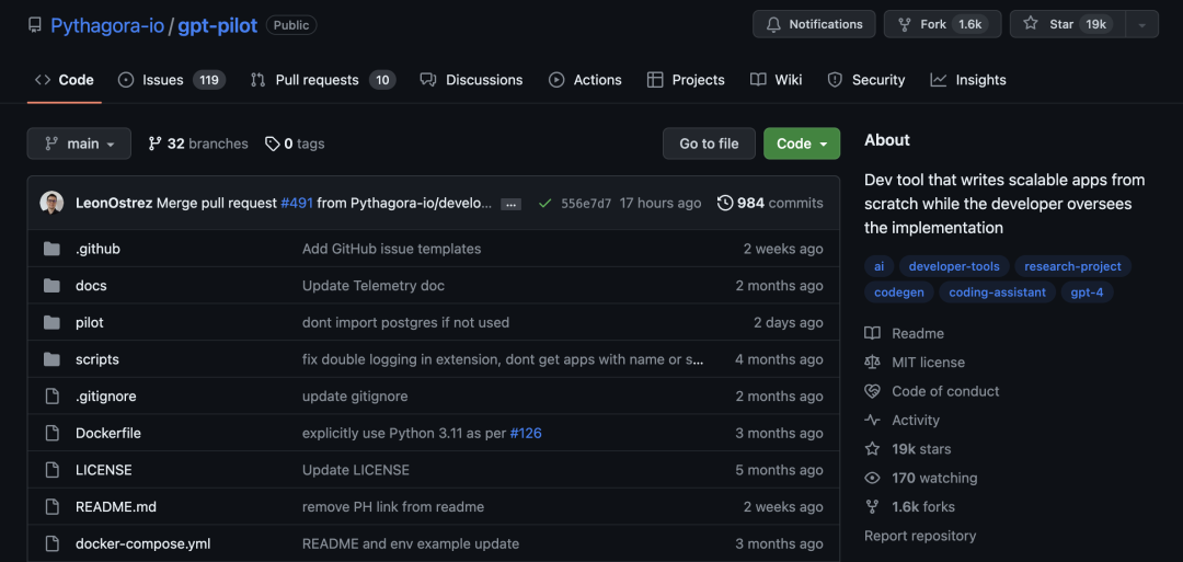 GPT Pilot,一个AI开发者伴侣,可以从0开始构建应用程序,可以自己编写代码、配置开发环境、管理开发任务、调试代码。