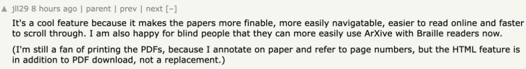 网友纷纷表示:「HTML 格式版本使论文更容易编辑、更容易在线阅读浏览。但是 PDF 方便打印,HTML 功能是下载 PDF 的补充,而不是替代。」