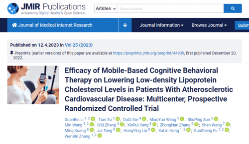 2023年4月份,智云健康联合科研院所共同开展的心血管领域数字医疗研究成功发表于Health Care Sciences and Services & Medical Informatics领域全球前三的期刊Journal of Medical Internet Research。该研究阐述了以CBT为方法学的数字化干预方案对动脉粥样硬化性心血管疾病患者血脂水平的影响,是首个公开发表的在国际心脏病领域采用数字疗法干预血脂的临床研究。研究结果显示,接受CBT干预方案的患者在LDL-C达标率、一般自我效能和生活质量指数方面均有显著改善。