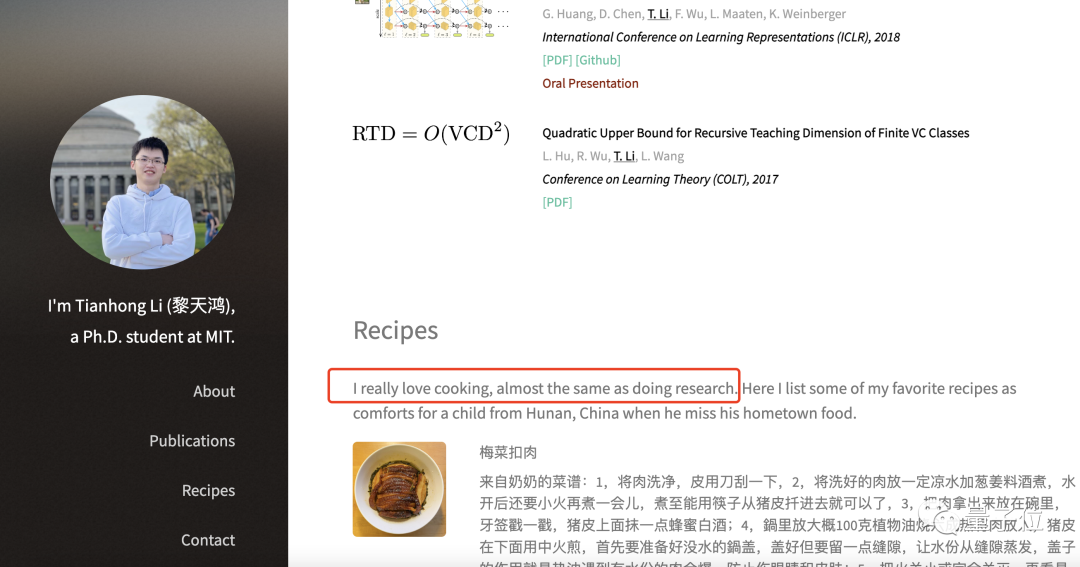 他的个人主页非常有趣,还专门放了一个菜谱合集——研究和烹饪是他最热衷的两件事情