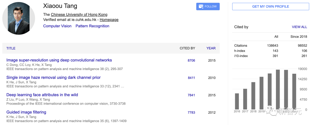 2020年,汤晓鸥成为了「人工智能全球2000位最具影响力学者榜」的入选者