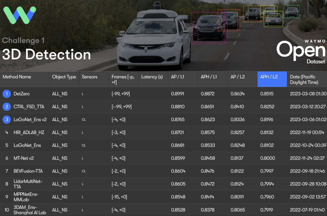 Waymo 3D跟踪排行榜,*表示匿名提交结果