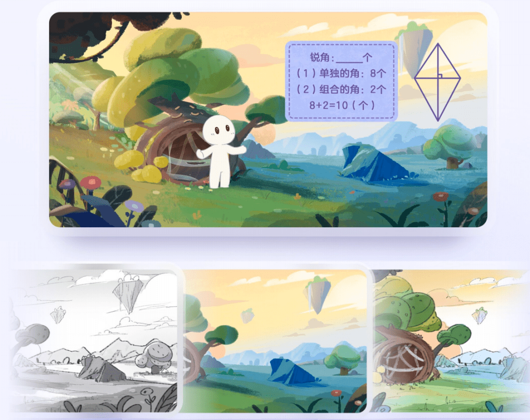 为了最大化激发孩子主动学习的兴趣,海豚AI学以高审美动画视频,创造性将交互视频技术应用到了学习产品中,将知识点融合在真实场景里,全程模拟学生的思维卡点,游戏化的互动体验,让学习不再枯燥。画风治愈、互动方式新颖,互动视频由国内顶尖院线电影获奖团队一手打造,让孩子的审美教育在每一次学习的过程中也悄然发生。
