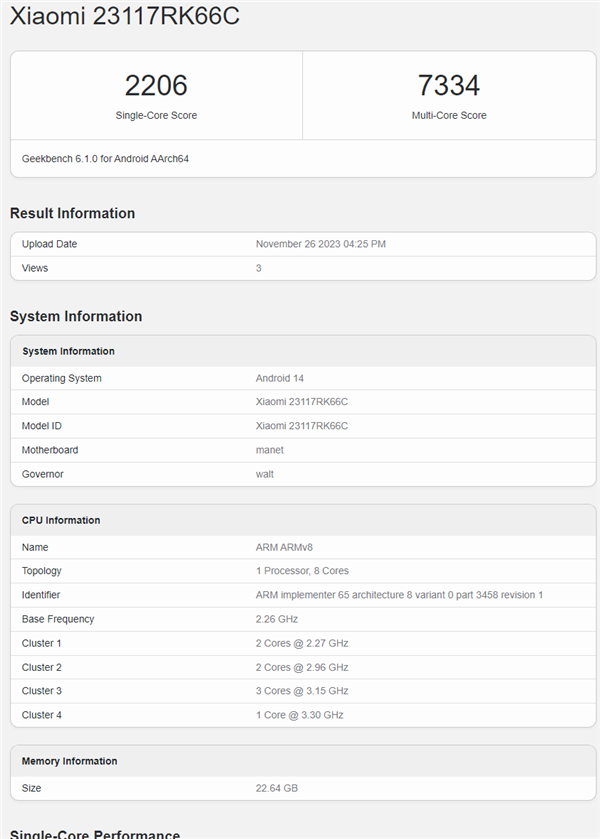 11月27日消息,随着Redmi K70系列手机发布日期的临近,手机频频在跑分平台Geekbench上亮相。近期,一款Redmi K70 Pro的测试机以型号23117RK66C示人,引起了广泛关注。