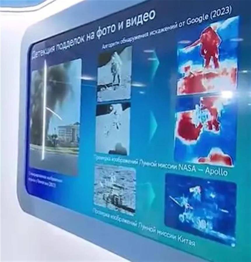 普京在参观过程中了解了俄联邦储蓄银行识别假照片和假视频技术的情况,该银行数据研究部门负责人尼古拉·格拉西门科在展览上向普京讲述了使用谷歌公司神经网络(人工智能技术)的经历,当时该项技术分析了关于美国登月任务的照片