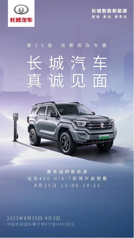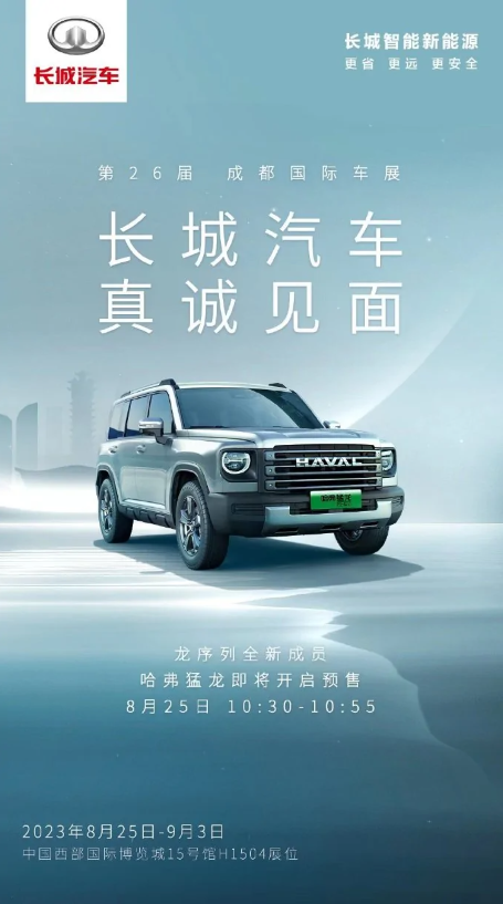 另外,长城旗下的龙序列品牌也将在成都车展上亮相两款备受瞩目的新车。哈弗猛龙作为龙序列的全新成员,将搭载1.5T发动机、Hi4智能四驱电混技术以及后桥差速锁等高级配置。此外,越野新能源坦克400 Hi4-T也将展示其强大的性能,这款中大型SUV搭载了2.0T 9HAT的动力组合,全新一代智能四驱系统更是为其提供了卓越的驾驶体验。