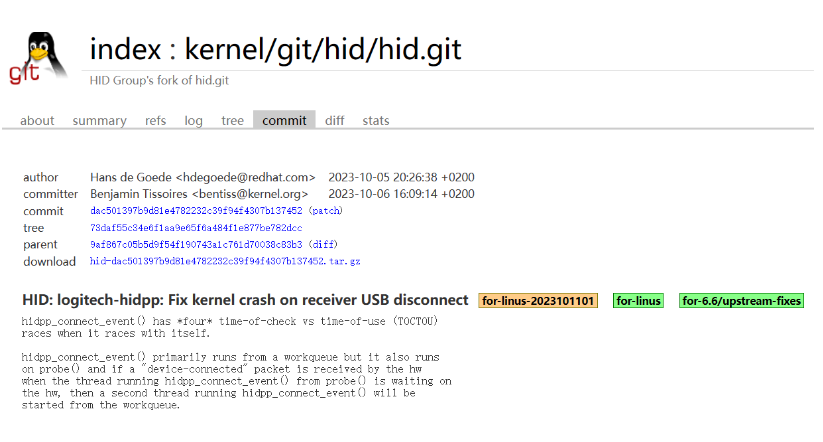 红帽公司的Hans de Goede负责解决这一罗技USB接收器断开连接引发的问题,包括USB断开连接导致内核崩溃、USB上的power_supply_uevent引发page_fault_oops、内核模块hid_logitech_dj导致系统崩溃,以及USB设备损坏、罗技统一接收器无法正常工作等多个方面。