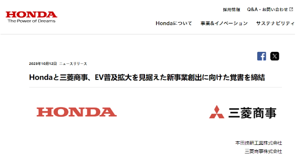 10月12日消息,近日,本田公司与三菱商事达成重要合作,双方签署了一份谅解备忘录,共同探讨电动汽车在日本的商业化问题,标志着两家公司在电动汽车领域的深度合作正式启动。