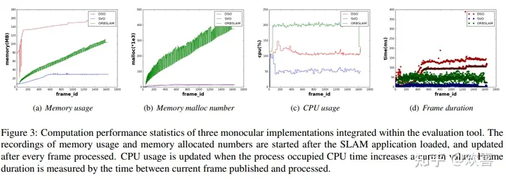 论文中使用TUM RGBD数据集中的序列nostructure-texture-near-withloop来演示评估的执行情况。接下来的实验采用三个开源的单目SLAM插件DSO, SVO和ORB-SLAM。在所有实验中,使用一台搭载i7-6700 CPU、GTX 1060 GPU和16GB RAM的计算机,运行64位Ubuntu 16.04。