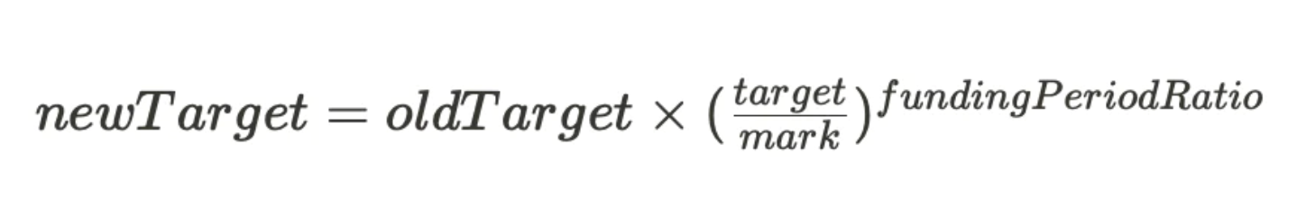 如果标记价格过低,说明很多人愿意铸造$paprMEME后卖出,即需要资金的人更多,那么利率就应该上涨。目标价格和利息费用将根据下列公式进行调整,这也参考了Squeeth的资金费率公式。