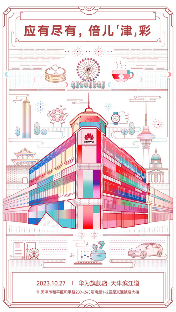 本站 10 月 26 日消息,华为宣布,天津首家华为旗舰店将于明日(10 月 27 日)正式开业,官方口号为“应有尽有,倍儿「津」彩”。