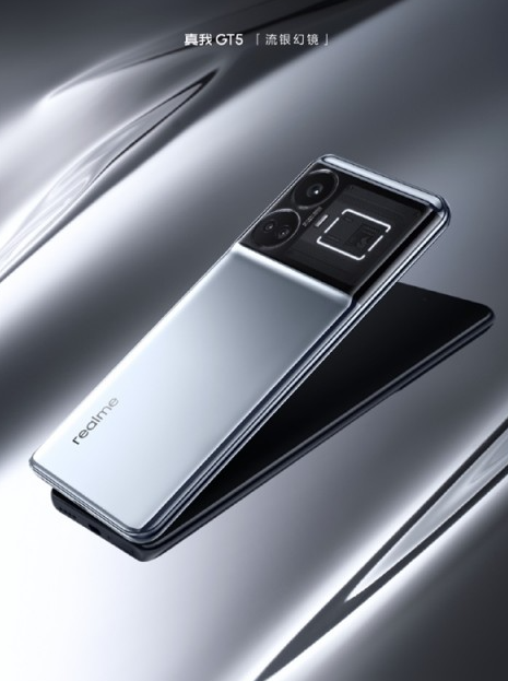 根据realme官方最新发布的实物图片显示,真我GT5系列将推出主打配色“流银幻境”。这种配色以银色为主调,采用了由真我与比亚迪电子联合研发的“奇迹玻璃”材质制作的玻璃后盖。该玻璃采用了行业领先的全覆盖热锻工艺,将哑光磨砂和镜面高光的效果融合,使得手机在不同角度下呈现出流动的光影变化,塑造出液态金属的质感,既增添了颜值又提升了质感。realme公司副总裁兼全球营销总裁徐起表示:“这是手机设计中首次应用酸性美学,也是在手机行业玻璃工艺上的一项高难度突破。我坚信,这将成为realme有史以来颜值和质感的全新高度。”此外,手机背面还采用了横向排列的超大三摄模组设计,并搭载了光环RGB灯带,从而在外观上具备了极高的辨识度
