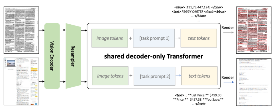 第一个任务涉及生成具有空间感知的文本块,即同时生成文本块的内容与坐标框。 需要被改写的内容是:第一个任务涉及生成具有空间感知的文本块,即同时生成文本块的内容与坐标框