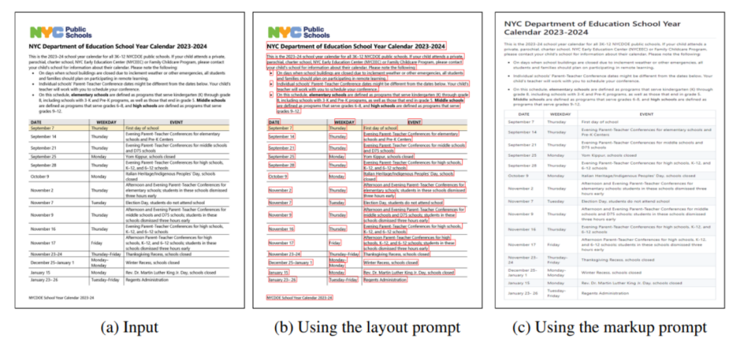 该数据集包含各种类型的文本密集图像,其中包括带有边界框的文本行和纯文本的Markdown格式,图4和图5为训练样本示例可视化。