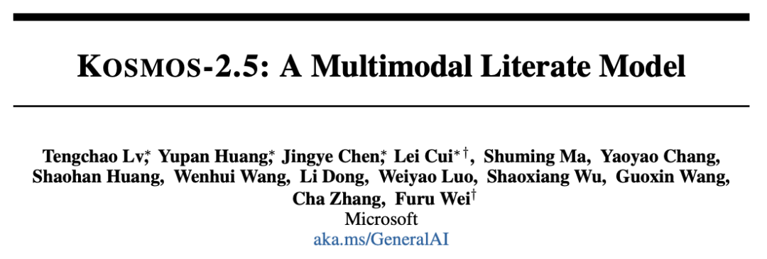 KOSMOS-2.5是一个基于文本密集图像的多模态大型语言模型,它是在KOSMOS-2的基础上发展而来的,突出了对于文本密集图像的多模态阅读和理解能力(Multimodal Literate Model)。