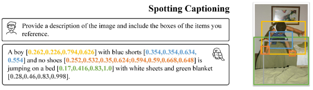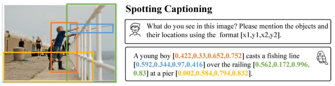 Shikra 直接使用自然语言中的数字来表示物体位置,使用 [xmin, ymin, xmax, ymax] 表示边界框,使用 [xcenter, ycenter] 表示区域中心点,区域的 xy 坐标根据图像大小进行归一化。每个数字默认保留 3 位小数。这些坐标可以出现在模型的输入和输出序列中的任何位置。记录坐标的方括号也自然地出现在句子中。